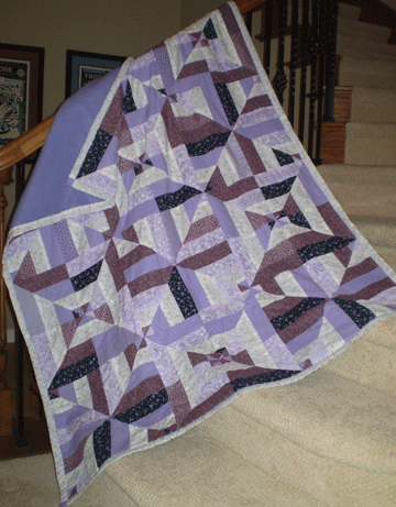 On Monday, July 8, Paul’s Mom went to the emergency room as a result of an infection. While I was visiting with her, and we were chatting about my quilt project, she commented that she would really like a lavender quilt. I told her she was in luck, because I just happened to have a lavender quilt in my stack of quilts waiting to be donated. I brought her the quilt on Tuesday, while she was still in the hospital. She didn’t like the hospital blankets since they are so heavy, and was thrilled to have the quilt which is so much lighter!