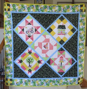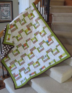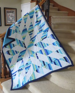 I’ve been wanting to make a Wanderer’s Wife quilt for awhile and when I came across these jelly rolls, I knew they would be perfect for this project. Part of wanting to do this quilt was the desire to use up some of my orphan blocks. As it turned out, the blocks I used are about half new and half orphan blocks. It does not have as many blocks as some Wanderer’s Wife quilts I’ve seen, but I like its simplicity.