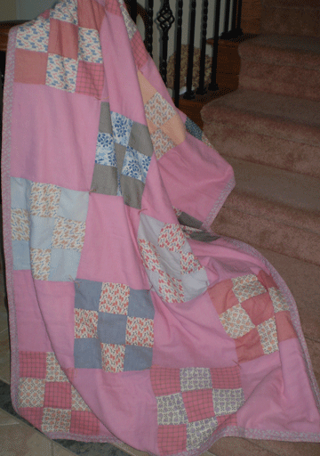 My very first blog post over ten years ago included Aunt Betty’s 9 Patch quilt that had been started by my Great Aunt Betty, many, many years ago. I inherited this as a “flimsy” sometime in the last millennia (wow, that’s fun to say), and, based on the fabric, I would guess that she had made it sometime in the 1940’s. It was twin size, and unfortunately, wasn’t very well sewn. At that time, I disassembled down to the block level, selected the best of the 9 patch blocks and reassembled into a lap size quanket.