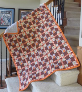 I made this quilt as a gift for my granddaughter’s 4th birthday which was earlier this month. When trying to get ideas for a design, I asked her what her favorite color is (blue, at that moment) and her favorite animal (cow, at that moment). I opted to design around her favorite color, as while I like cows, they were just not sparking much creative inspiration for me.
